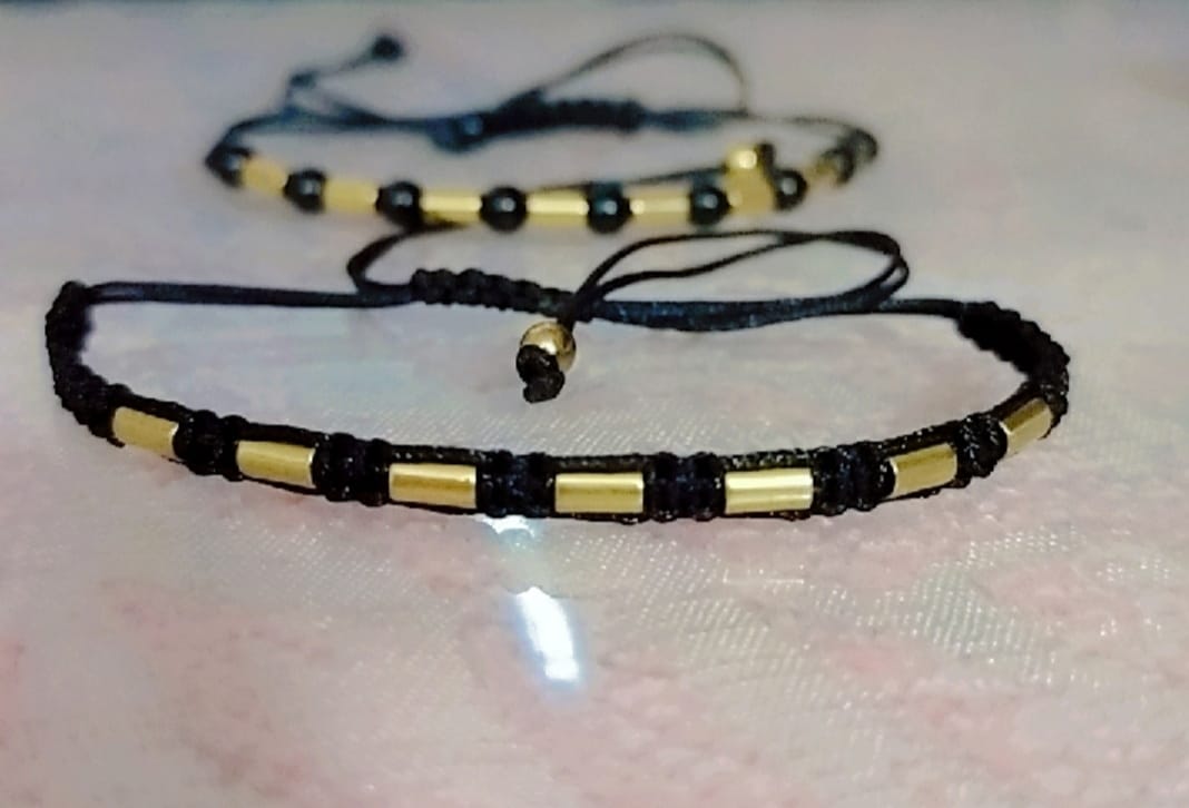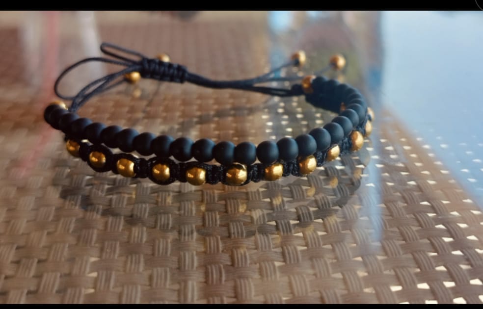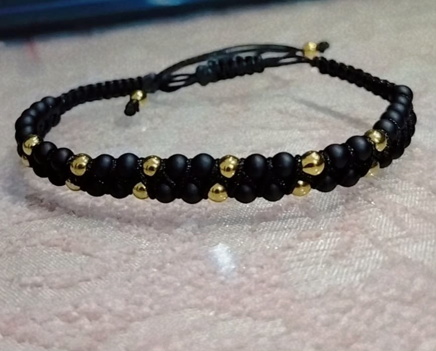 حظاظة بالخرز الاسود الفخم وخرز ذهبي