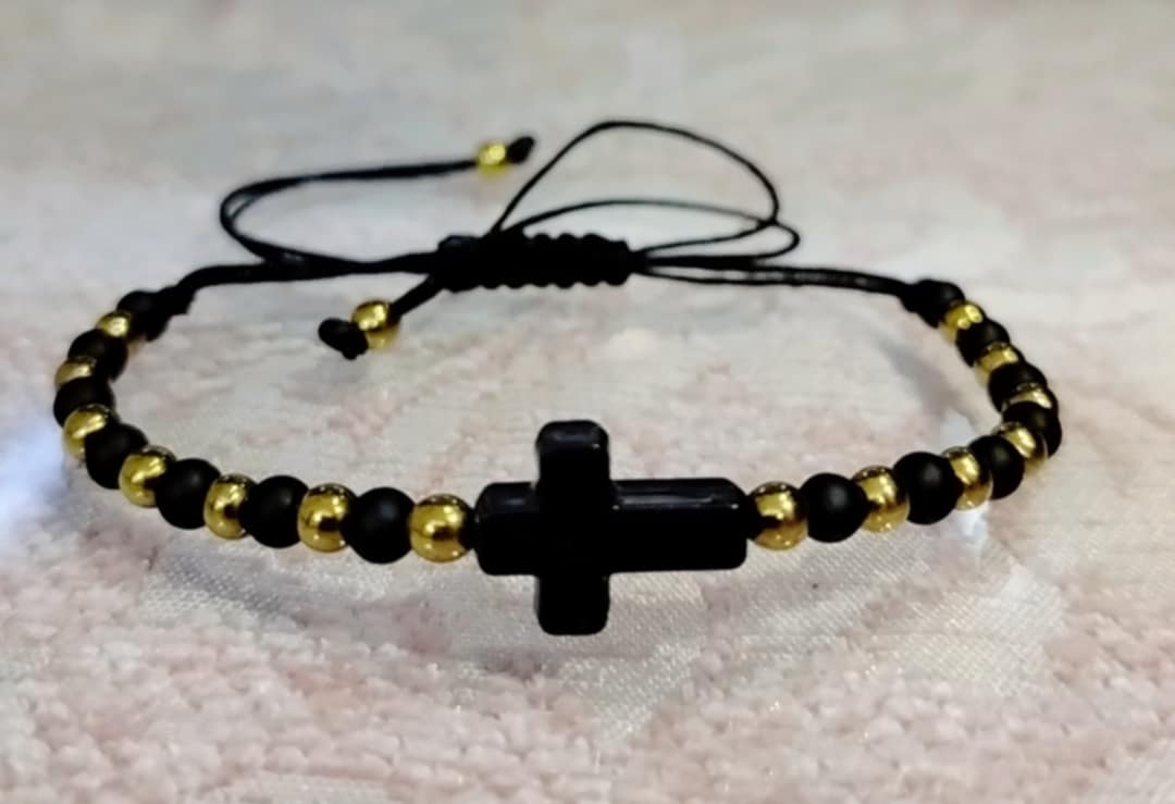 حظاظة صليب اسود بالخرز الزجاج