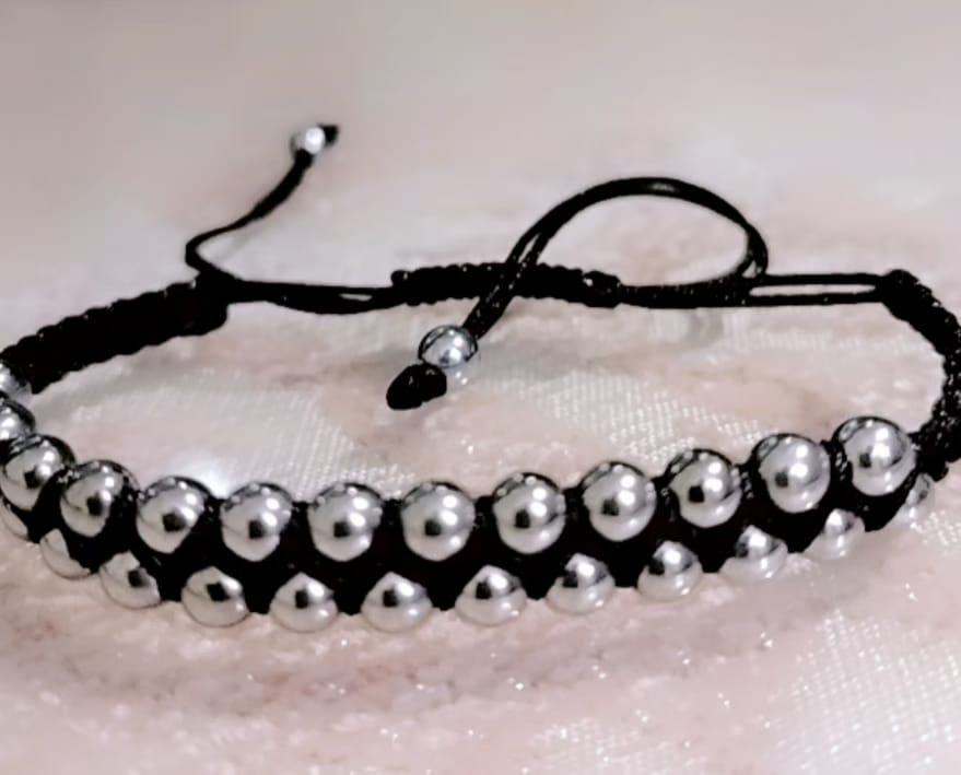 اسورة خرز فضة مربوطة بالحبل الاسود